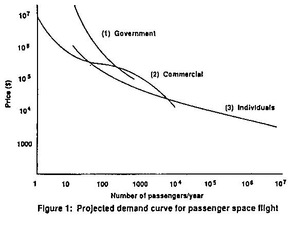 Beyond this, the only published figure is the author's 1986 speculation that at a price of $10,000 (130 man¯) demand would reach one million passengers per year (4), which has been quoted with approval (5, 6), and criticized only for being conservative. The fact that so little market research has been done on a service with such an apparently promising future is itself interesting, and indicative of the non-commercial behavior of the space industry.