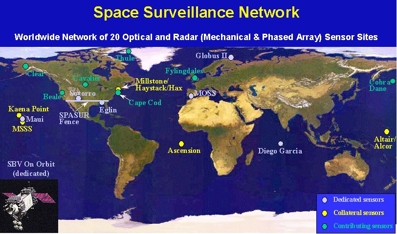 The space control centre is the terminus for an abundant and steady flow of information from the space surveillance network. It has large and powerful computers to store “observations” which include both time tagged optical and radar measurements which sometimes include size estimates in the form of average radar red Cross section. The SCC computers and stores ephemeris for tracked objects. Owner of operational satellites may know the locations of their satellite to much better accuracy[14].
