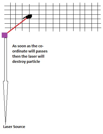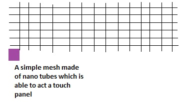 In this technique we will use the nano tubes. We will create a mesh that will act as a touch panel of the touch screen cell phone. When any small or tiny particle will come on this mesh and touch it then the mesh will act as a touch panel and so that the corresponding processor or sensor will come to know the co-ordinates of it then further by using Destructive laser beam we can destroy that particle. For this type of mesh we are going to use the bunch of the Nano tubes(as per need) for creating the single thread of the Nano mesh. In this we planned to implement the technique of the RESISTIVE TOUCH PANEL. The working of this panel is just similar to the working of the resistive touch panel that presently we are working in the Touch Screen Cell phones. Whenever the particles dashed the panels the place where the particle dashed, the resistance reduces from infinity to some value. And current will flow from the point of touch between the two meshes. This is how the processor will get its coordinates and further action will be taken. For making the meshes we use the carbon nano tubes(CNT) because of its properties. CNT have been constructed from length-to-diameter ratio 132,000,000:1 as compared to other materials. CNT is the strongest material yet discovered in the terms of strength. Mainly we have to use the multiple nanotubes as MNT consist of multilayer rolled of graphite. It has good strength as compared to other materials. Moreover CNT is better than stainless steel, good electrical property which helps us in the process. ![]()