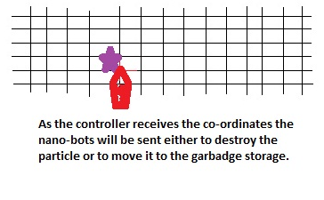 In this method also we will use a nano mesh which is made up of the nano tubes and the corresponding arrangement will be done so that the mesh will act as a touch panel same as that of the touch screen phones. When tiny particles will dash on the nano mesh then the Nano Bots which will be at the specific co-ordinates, collect the particles and store them into the garbadge storage. Today the Nano robots are used for various medical treatments. But here we will use the Nano robots as a carrier. When the tiny particles from the space will get entangled into the mesh and corresponding will be sent to the processor then the nano robots will go to the specific location. These nano robots will be programmed to collect the particles and placed it into the storage. One point here we have to note is the size of these Nano Robots won’t be at nano level it must be greater normally visible to our eyes at least because we want these robots to pick up the particles and move them to the storage. The accuracy of these robots must be that much sufficient so these robots won’t leave any particle behind. ![]()