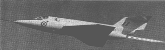 Figure 7. Saunders-Roe S.R.53. (One Rolls-Royce Viper turbojet rated at 1640 lb thrust, and one de Havilland Spectre rocket rated at 8000 lb thrust. Max take-off weight 19,000 lb.)