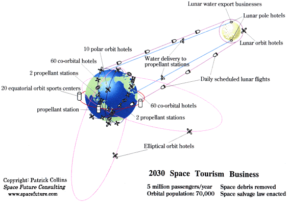 11. P Collins, 2000, "The Space Tourism Industry in 2030", Proceedings of Space 2000, American Society of Civil Engineers, pp 594-603; also at www.spacefuture.com/ archive/the_space_tourism_industry_in_2030.shtml